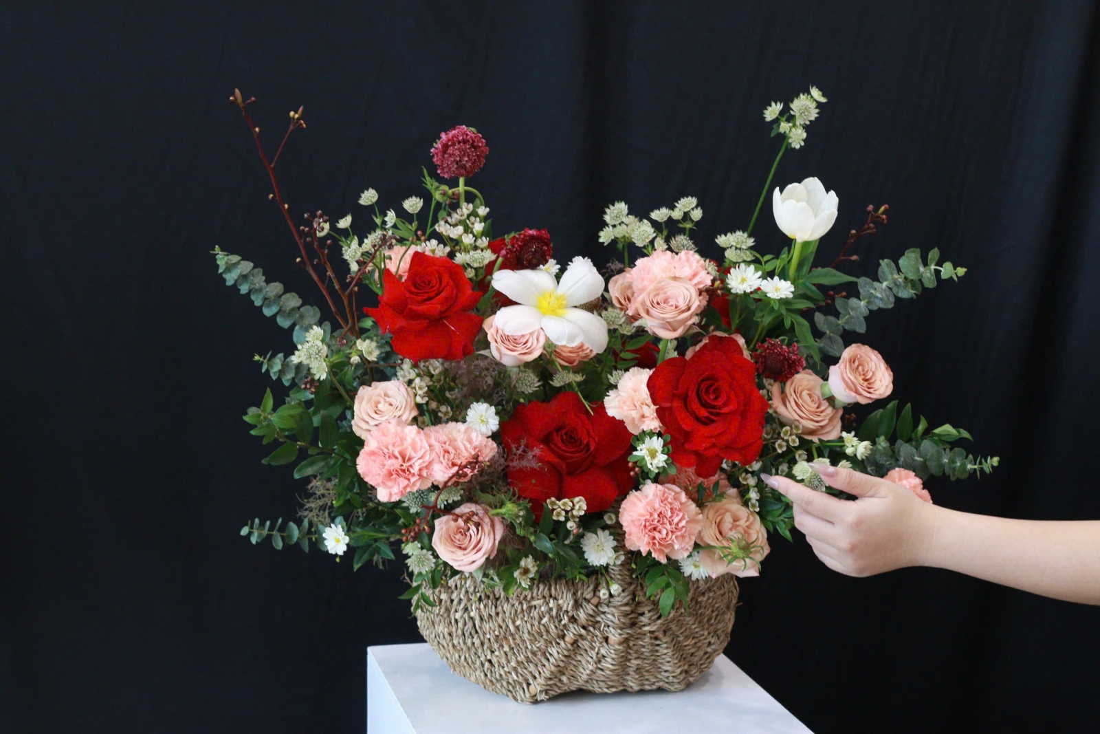 Kết hợp hoa hồng đỏ/trắng với phụ kiện cao cấp, phù hợp làm quà tặng sinh nhật, kỷ niệm