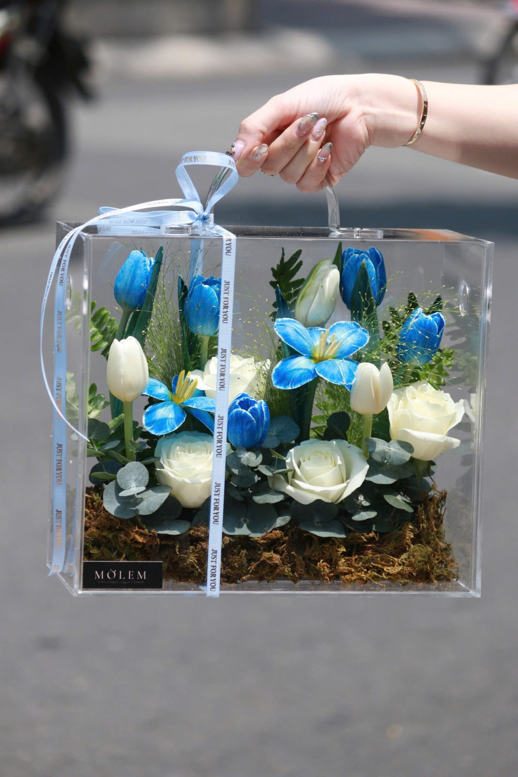 ✅ Thiết kế sang trọng - Hộp mica trong suốt kết hợp hoa tươi cao cấp