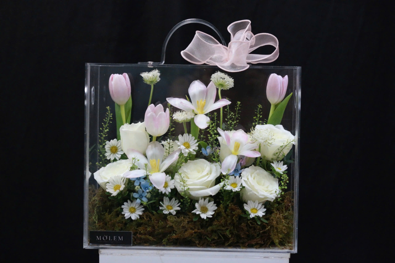 Hoa Box Mica Cao Cấp - Quà Tặng Sang Trọng | Mờ Lem Florist - Hoa Box Mica Quận 3