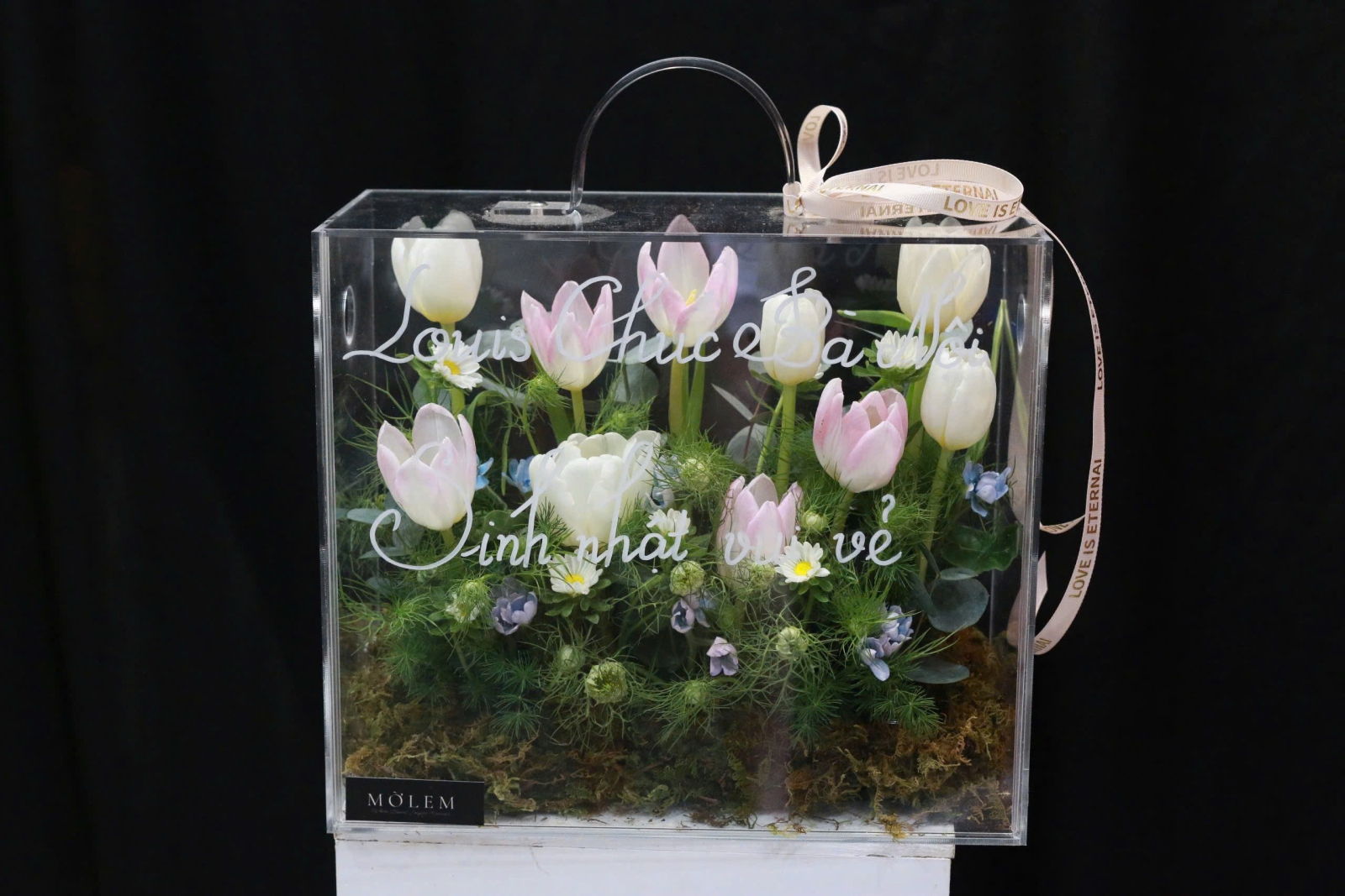 ✅ Thiết kế sang trọng - Hộp mica trong suốt kết hợp hoa tươi cao cấp