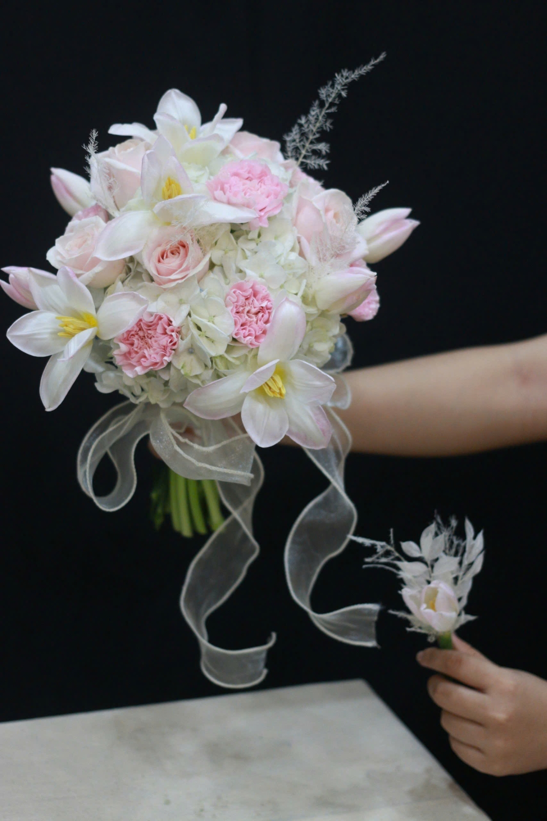 Sử dụng hoa hồng Ecuador, hoa cẩm tú cầu, hoa lan trắng